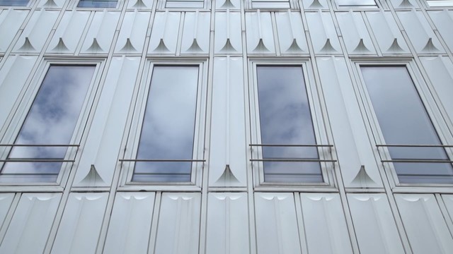 Blickfang ist die an den Obergeschossen vorgehängte Konstruktion einer weißen, stark profilierten Kunststoffverkleidung aus Hostalit-Z – ein Produkt der Hoechst AG. Sie besteht noch bis heute im Original und stellt weltweit ein Unikat dar. Erbaut: 1966-1968.